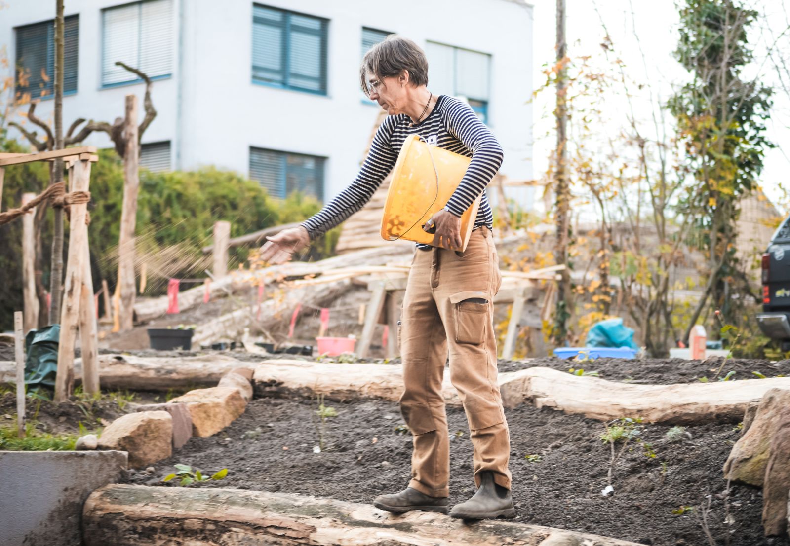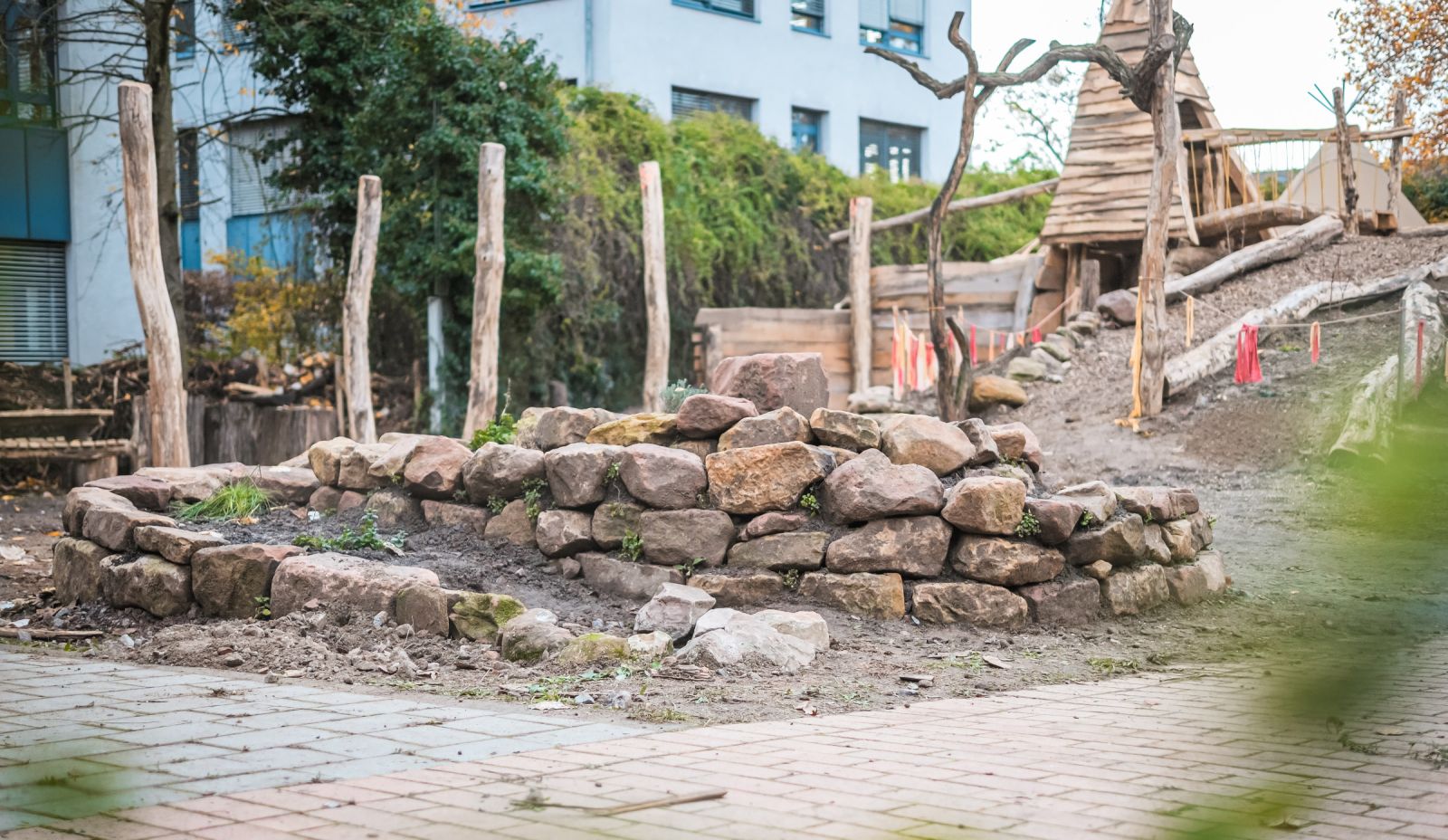 Für angehende Erzieher:innen wurde ein vielseitiger Naturraum geschaffen. Hier lernen sie, wie naturnahe Außenbereiche im Kindergarten gestaltet und für natur- und erlebnispädagogische Angebote genutzt werden können.
