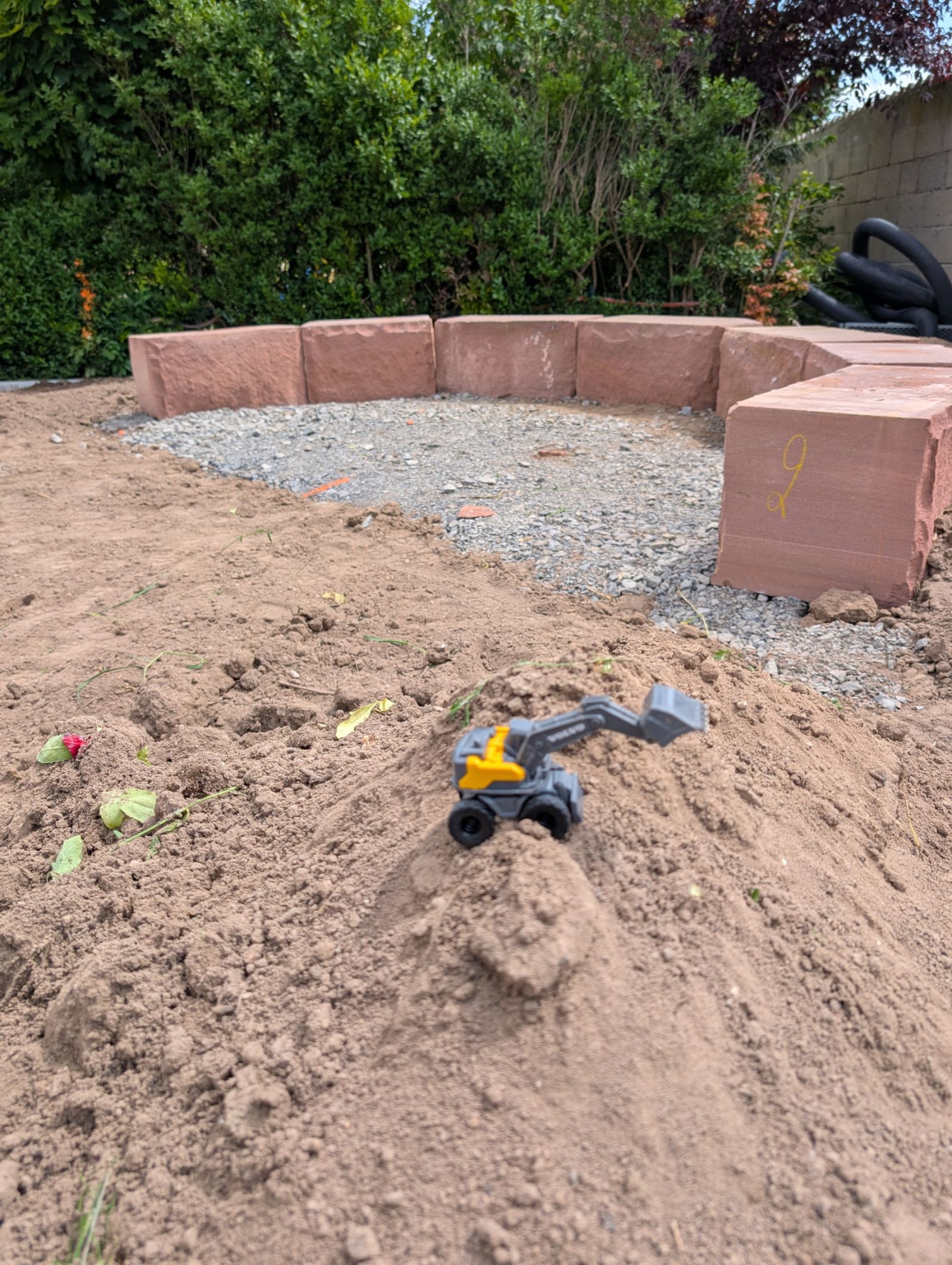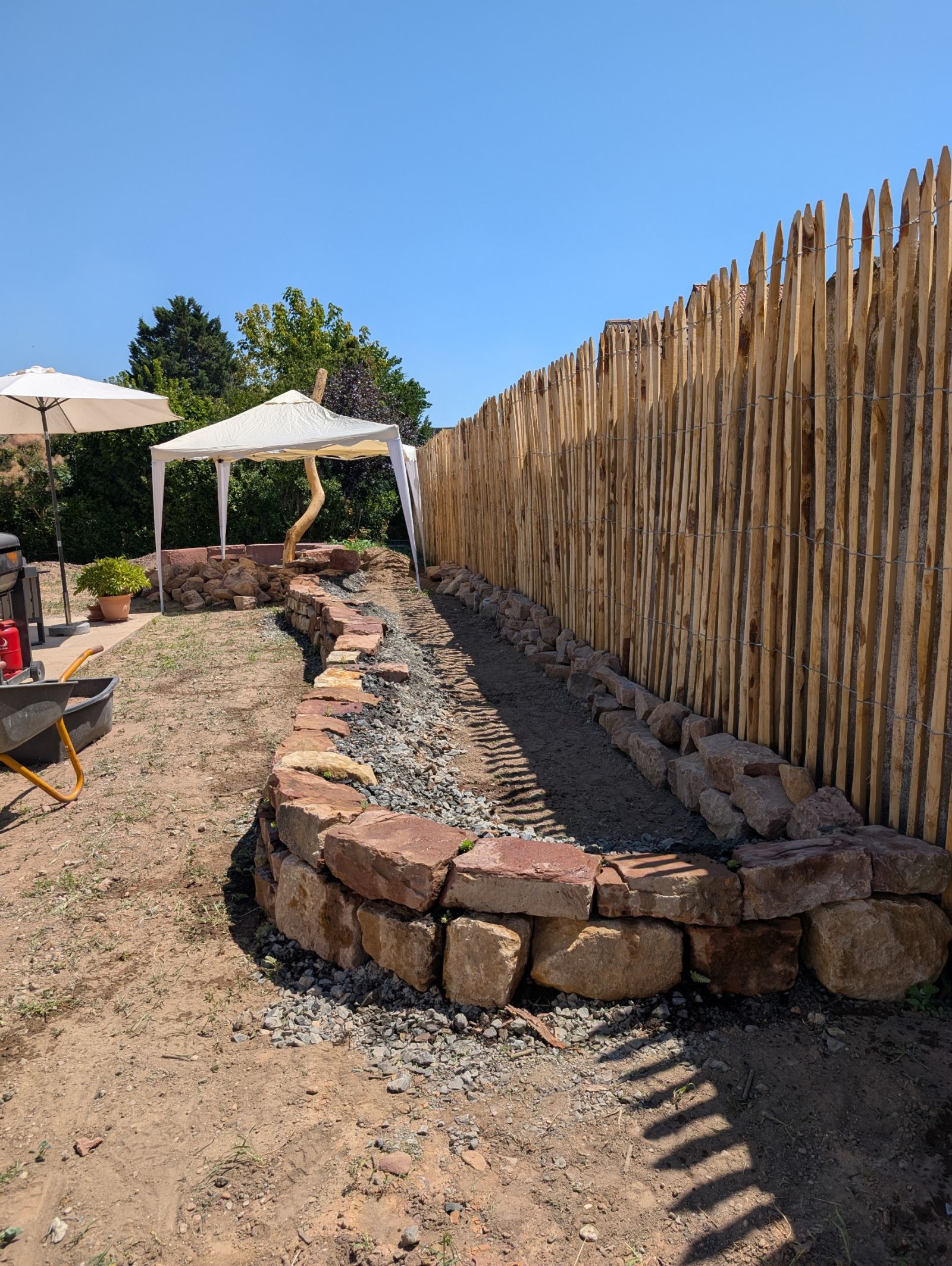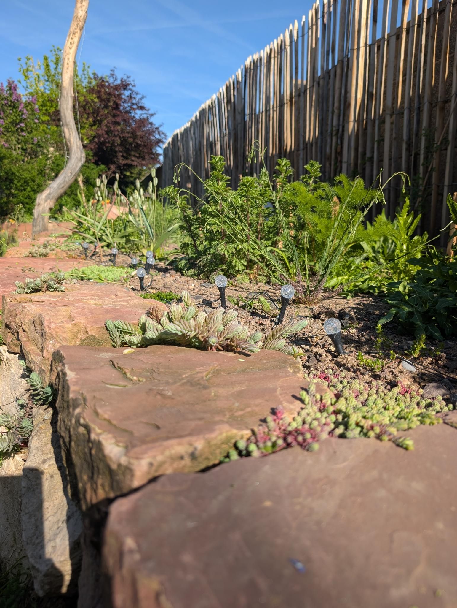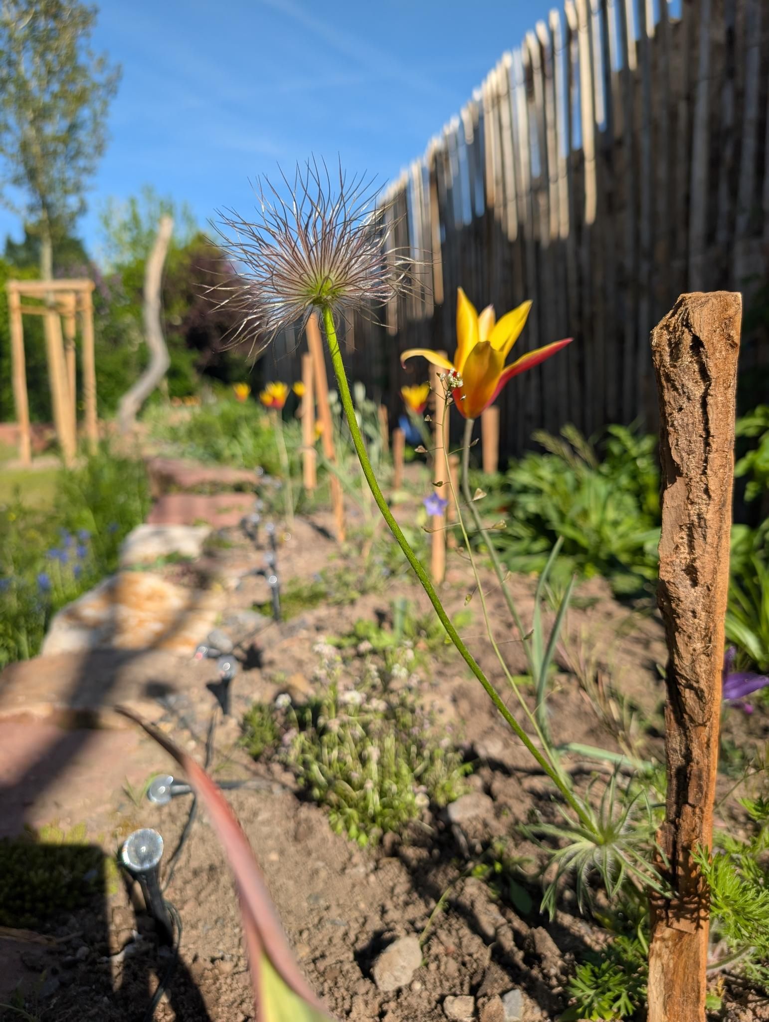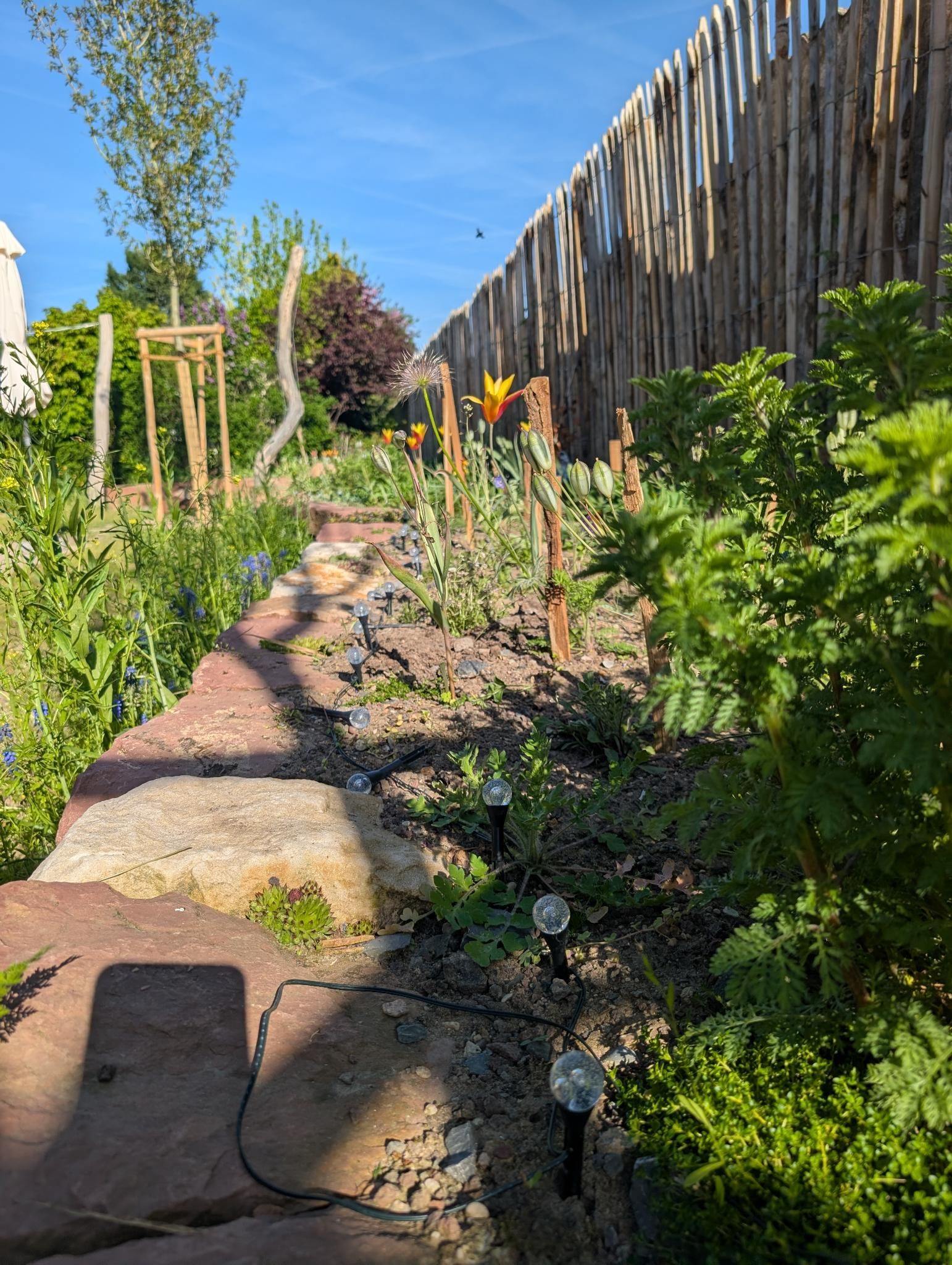 Ein abwechslungsreicher Garten mit Spielbereich, Matschplatz und naturnahen Pflanzungen. Elemente wie Kräuterspirale, Hochbeete, Wildstrauchhecke und Klimarasen verbinden Gestaltung mit ökologischer Funktion.